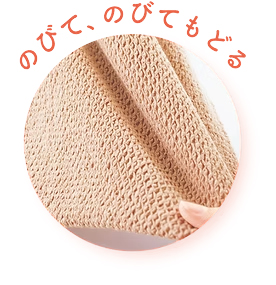 オリジナルの鹿の子調の編みはタテ・ヨコ・ナナメ全方向に伸び、クッション性も抜群!