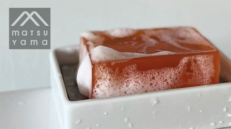 松山油脂の石けん素地の純度は98%。残りの2%のうち、1.2~1.7%はグリセリンです。最も古い保湿剤といわれ、つっぱり感を和らげるグリセリンが自然に溶け込んでいます。