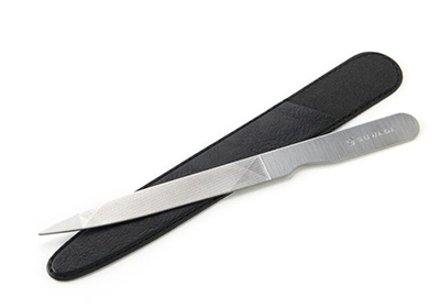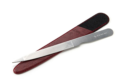 SUWADA爪切りと爪ヤスリ 「パチン」じゃなくて「サク」と切れるから爪を傷めない 切ったつめの断面が、やすりがけがいらないくらい滑らかに整うSUWADAつめ切り。職人が一点一点丁寧に仕上げているため、「バチン」ではなく「さくっ」と切れる、爪への負担が少ない切れ心地です。 錆びに強いステンレス製のつめ切りに美しいヘアライン仕上げを施しており、傷や汚れが目立ちにくい仕上げです。ご家庭での日常使いにぴったりのモデルとなっています。大きさは、男性・女性ともに握りやすい標準サイズです。研ぎなおしも可能のため、長い間愛着を持ってお使いいただけます。つめ切りを安全に収納できるメタルケース入りです。 ケース入り/税込8,964円 切りっぱなしの爪は引っかかりやすくなったり、爪を痛める原因にもなります。ネイルファイル(爪ヤスリ)で爪の形を整えたり仕上げたりすることをお勧めいたします。 SUWADAのネイルファイルは職人による3段目立てにより、細やかな削り心地を体感できます。 また、長めに握りやすくデザインされた持ち手が手にしっくり馴染みます。 各税込2,200円