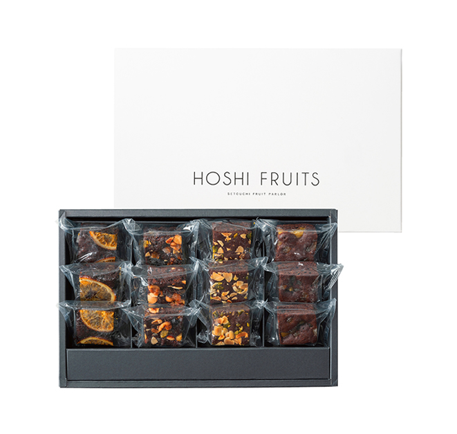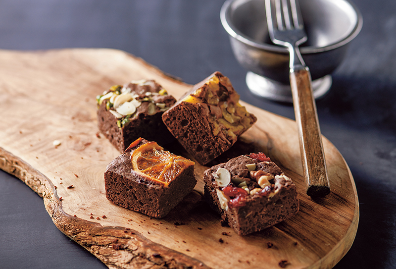 濃厚なチョコレートの生地に、香ばしいナッツや甘酸っぱいフルーツをトッピング。ピスタチオとアーモンド、ごろっとしたパイナップルやネーブル、たっぷりのドライフルーツとナッツ…。おいしさをぎゅっと詰め込んだキューブが、お口に小さなしあわせをお届けします。