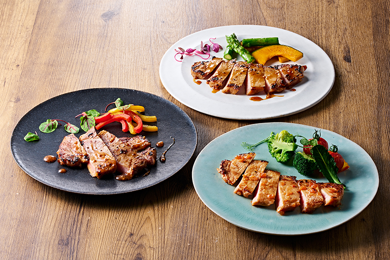 自然豊かな山口県鹿野にある農場で育てられた豚ロース肉を、玉ねぎベースのシャリアピンソース、香辛料が香るスパイシーソース、鹿野ファーム特製オリジナルソースでそれぞれじっくり熟成させ仕上げました。フライパンで焼いてお召しあがりください。