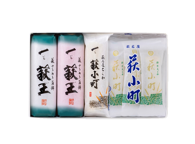 一萩王かまぼこ大(白・紅)各160g×1個、一萩小町ちくわ1本入×1・萩小町ちくわ3本入×1個