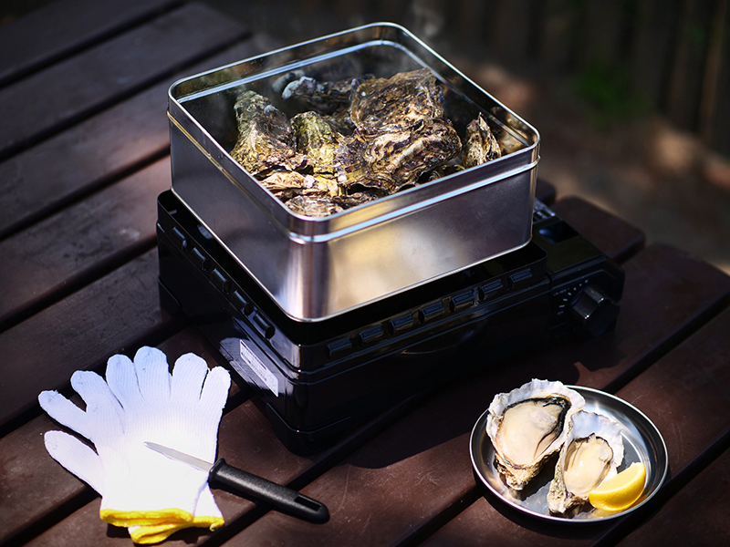 広島牡蠣の身太りが最も良くなる時期に水揚げされた殻付牡蠣を鮮度・風味そのままに殻ごと冷凍し、カンカン焼きのセットにしました。軍手とナイフも付いており、カセットコンロでもアウトドアでも簡単に牡蠣のカンカン焼きがお楽しみいただけます。