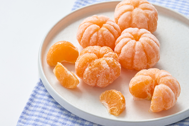 日本でも有数のみかんの産地、愛媛県西宇和地区で採れたみかんをひとつひとつ手作業で皮をむき、冷凍みかんにしました。甘みが強い小玉果を使用しているので冷たいのにスイーツのように甘い冷凍みかんです。