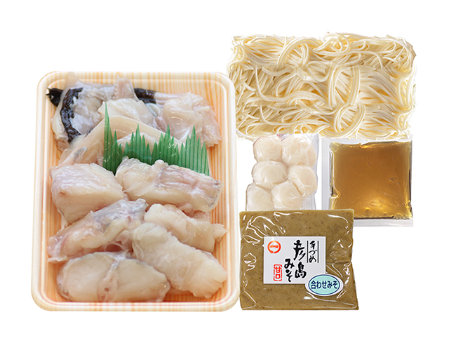 あんこう350g、あんこうつみれ60g、冷凍うどん180g、彦島みそ200g、鍋だし55g