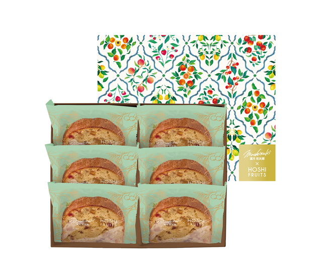 大切な人への手土産に、フルーツのデザイン模様を描いた箱に詰めてお届けします。