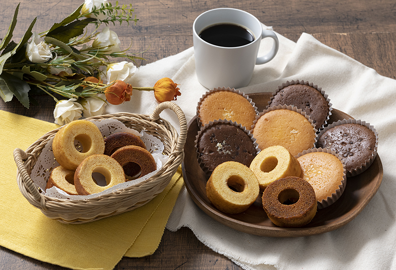 元気なたまごをたっぷりと。ちょっと贅沢なティータイム。有精卵をたっぷり使ったスイーツの詰合せ。ミニバームクーヘンや、二つの味のマドレーヌなどバラエティ豊富だから、みんなの集まりが華やぎます。