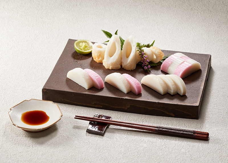 鮮度の高い素材を使い、山口県萩市の伝統やきぬき製法で作られた力強い弾力が人気の『萩王』の紅白蒲鉾と創業当時より親しまれ、肉厚とみずみずしさが魅力の焼ちくわ『萩小町』を詰め合わせました。